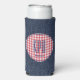 Dark blue denim print and classic vintage red and white buffalo check circle frame covers this trendy Slim Seltzer can cooler with stylish skinny initials and modern name in dark blue. Easily change name and initials using the Template provided. Fits 12oz slim cans. Easy to clean durable fabric will last for years and keep your drink cold. Collapsible foam material makes for easy storage. See "About" for more information.