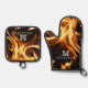 Monogram Name Fire Flames Oven Mitt & Pot Holder Set
