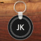 Monogram keychains in black and white designed with monogram name initials and geometric circles you can personalize right on our website. Created as a party favour for weddings, parties or social events and is a budget ready design you can use to purchase in bulk.
