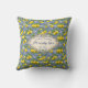 Monogram Name Lemon Blue French Country Tile Throw Pillow