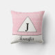 Monogram Name Pink White Geometric Pattern Throw Pillow
