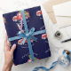 This cute wrapping paper features your monogram initial and name with a rustic red truck filled with a Christmas tree and presents, and "Merry Christmas" in modern typography on a navy blue background. This festive Christmas wrapping paper is perfect for gifts from Santa this Christmas holiday season! Can be easily personalized with your name and monogram.