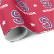 Elevate your gift-giving with monogrammed wrapping paper! This sports jersey-style pattern features a retro block font, stars, and is personalized with a monogram initial and the recipient's name. You can also customize the background colour by using the design editor tool. A stylish design that would suit many occasions, including Christmas, birthdays, graduations and more — perfect for all ages, from kids and teens to family and friends! This seamless gift wrap is available with a matte or glossy finish. Printed colours: crimson red, dark blue navy and white.