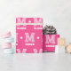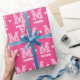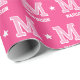 Elevate your gift-giving with monogrammed wrapping paper! This sports jersey-style pattern features a retro block-style font, stars, and is personalized with a monogram initial and the recipient's name. You can also customize the background colour by using the design editor tool. A cute design that would suit many occasions, including Christmas, birthdays, graduations and more — perfect for all ages, from kids and teens to family and friends! This seamless gift wrap is available with a matte or glossy finish. Printed colours: pink and white.