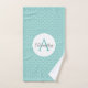 This beach house inspired design allows for the customization of the name and initial letter monogram over a skeletal sea shell pattern over a green background. Customize the template text, remove one or the other template items or click customize to select font style, size, and colour you prefer. The monogram is on all three towels.