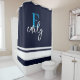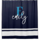 Monogram Nautical Stripes Navy Blue White Shower Curtain. Personalize this elegant shower curtain with your custom monogram initial and name.