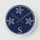 Monogram Nautical White Navy Blue Starfish Beach Round Clock