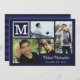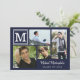 Large monogram navy blue design with four photos on the front and graduation party invitation on the back.