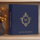 An elegant navy blue and gold design with the monogram initial in a vintage crest. The crest is faux gold foil, the background is navy blue. In the lower part, there is the name in small golden caps. The name is also written on the spine.