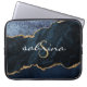 Monogram Navy Blue Gold Agate Geode Laptop Sleeve