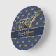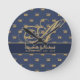 Monogram Navy Blue Gold Crown King Queen NEWLYWEDS Round Clock