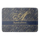 Monogram Navy Blue Gold Leaf Newlyweds Wedding Bath Mat