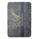 Elegant commemorative wedding gift for the newlyweds allowing you add their surnma emonogram, names and wedding date. Pattern here is a lovely deep navy blue with gold coloured leaf pattern.