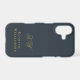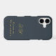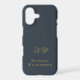 Elegant monogrammed neutral stylish simple premium look iPhone case, customizable personalizable with monogram initial letters and the name, appropriate for a gentleman. Refined monochrome classy navy blue background, elegant gold calligraphy script handwriting for the initials, and gold serif typography for the name. Beautiful minimalist minimal and timeless, for you or as a thoughtful custom useful tech electronic accessory gift for him. A best friend, a coworker, a boss, or someone from the family, a dad, a brother, even a grandfather will be very happy to receive this cellphone protection case. For personal or professional business use. Very affordable, a custom gift under 35 dollars for him, suitable for many occasions and celebrations, like birthday, Father’s Day Christmas, graduation, retirement, anniversaries or just to make him a little surprise, without any special occasion. Modern lifestyle customized men gift.