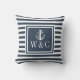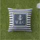 Monogram Navy Blue Striped Nautical Anchor Outdoor Pillow