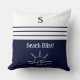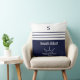 Monogram Navy Blue Stripes Nautical Beach House Throw Pillow