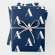 Customize w/Initial monogram Letter navy blue and white Wrapping Paper Sheets