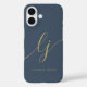 Monogram Neutral Modern Minimalist Stylish Navy Blue Gold Script Calligraphy Initials Phone Case.