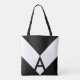 Monogram on Black & White Abstract Triangle Geometric Shapes Tote Bag. Monogram can be personalized.