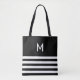 Beautiful modern black and white stripes with monogram Tote Bag. Elegant women black white shopping Bag.