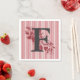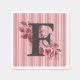 This paper napkin set is decorated with a dark monogram on pink stripes. Behind the letter is a floral spray of cabbage roses. To change the letter, tap "Edit Design", choose the letter image, then "Edit text". You can also change the letter size (+ or -) and move it up or down to your taste. Use the green 'circle' as a guide. See my shop for other items in this design.