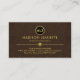 At the top is a gold circle logo where you can place your name initials-monogram (You can use different sizes of fonts or styles to your liking). Underneath this is your prestigious name and the job title which you can change. At the base of the card are your contact details.
