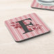This is a set of hard plastic coasters featuring cabbage roses on a striped ground. In the centre is a large monogram. To change the letter, press "Edit Design", tap the letter, then "Edit text". You can also change the letter size and move it up or down as desired. Use the green 'circle' in the centre as a guide. Check out my other items in this series - just press my shop name.