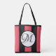 MONOGRAM on WHITE w/WATERMELON & BLACK Stripes Tote Bag