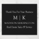 Modern Minimalist Business Thank You sparkling wine Bottle Label. Black & White or choose your custom colours. Perfect for small business, online sellers, company brands, real estate sales agents, hospitality and more. Easy to personalize with your monogram initials, business name and information, job title, slogan or even add your logo or personal brand design.