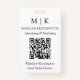 Modern Minimalist Name Badge. Black & White or choose your custom colours. Add your website or social media web address to the QR Scan Code. Perfect for small business, company brands, self employed, beauty salons, spas, caterers, bakeries, coffee cafes, restaurants and more. Easy to personalize with your monogram initials, business name and information, job title, slogan, employee photo or even add your logo or personal brand design.