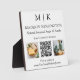 Modern Minimalist Business Plaque Tabletop Sign with 2 Photos. Black & White or choose your custom colours. Add your website or social media web address to the QR Scan Code. Allow customers to use the scan to access information on your items such as products or menu items. Perfect for retail companies, small business shops, mall kiosks, trade show and event booths, hospitality, salons, spas, bakeries, cafes, restaurants, bars and more. Easy to personalize with your monogram initials, business name and information, photos, slogan or even add your logo or personal brand design.