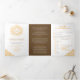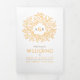 Monogram orange brown leaf fall wedding all-in-one Tri-Fold invitation