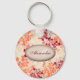 Monogram Orange Red & Cream Flowers Retro Keychain