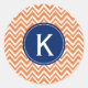 Monogram Orange Zigzag Pattern Classic Round Sticker