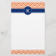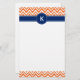 Monogrammed orange chevron pattern with royal blue accent. Add your monogram.
