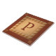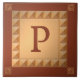 This warm-toned tile features a large capital P in a contrasting parquet wood look border. Decorative motifs on a cherry-wood effect border create the look of marquetry. The design captures the beauty of different woods such as cherry, maple, oak and ash.