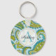 Monogram Paisley Colourful Aqua Boho Trendy Chic Keychain