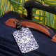 Personalize the monogram on this pretty purple pansy luggage tag. You can also change the background colour to black.