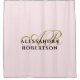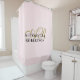 Personalized customized monochrome monogrammed bathroom shower curtain. Elegant gold initial letters in handwritten calligraphy and stylish black name. Feminine girly trendy pastel pink background, clean and chic bathroom accessory. For a minimalist minimal modern home decor style, timeless, classy, beautiful simplicity. Could also become a thoughtful custom housewarming, new homeowner git for a elegant stylish and trendy woman.
