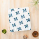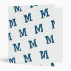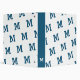 Design features a white background to a pattern of the initial you supply in an ocean-blue print on both front and back. Spine features an ocean-blue background to a single initial in white displayed at bottom.