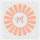 Monogram Peach Grey Sun rays Initial "M" Square Sticker