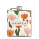 Monogram Personalized Cute Spring Tulip Pattern Hip Flask
