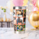Add 15 family, kids, pets or best friends photos and create your own trendy collage grid orange peach tumbler with your personal or family monogram name initial inside a white heart. +++++++++++ Easy to personalize with your custom square images and letter. It can be a nice thoughtful keepsake gift for a family member, friend, or coworker on a birthday, anniversary, Christmas, or any other occasion.