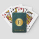 This is black surface with gold circle badge monogram initial can be edited, which give an unique appearance. You can add your favourite photo. This is perfect gift idea. Personalize with your name and other text. Make your own deck of cards for your friends or family and make it personal. Designed for men or women who like fancy elegant designs.