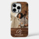 Monogram Photo Wood Grain Timber Personalized Name iPhone 16 Pro Cases features your favourite photo with your personalized name and monogram on a wooden accent. Personalize by editing the text in the text boxes provided. Designed by ©Evco Studio www.zazzle.com/store/evcostudio