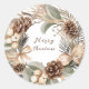 Monogram Pinecone Winter Wreath Merry Christmas Classic Round Sticker