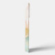 This watercolor design features peachy pinks, teal blues, and hues of gold with a touch of faux glitter.