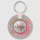 Shimmery diamond harlequin pattern of pinks and greens on a pink backdrop for contrast then a shiny silver sphere with green and pink flourish where you can personalize it with a letter and name to make it uniquely your own. Girly elegant vibes.
