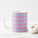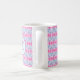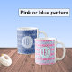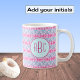 The design on this mug has been created by a repeating pattern of bicycle wheels in deep pink and aqua colours. Personalize this by entering your chosen three initials in the boxes shown to make a monogram. A unique gift for any keen cyclist.