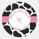 Monogram Pink Black Cow Print Name Classic Round Sticker